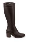 * Gön Suni Deri Yuvarlak Burun Topuklu Fermuarlı Kadın Günlük Çizme