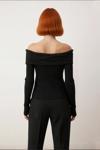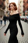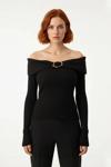 PayBuy Kadın Kahverengi Fitted Carmen Yaka Aksesuar Detaylı İnce Triko Kazak Şık ve Konforlu Tasarım