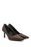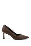 * Gön Suni Deri Sivri Burun İnce Ökçe Kadın Topuklu Ayakkabı