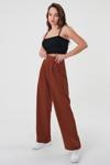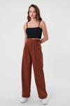 Kadın Kahverengi Yüksek Bel Cırtlı Palazzo Pantolon