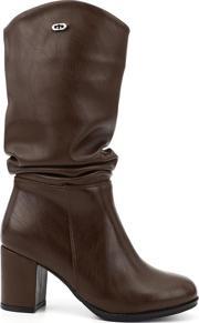*Yuvarlak Burun Körüklü Kalın Topuklu Çizme