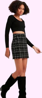 Zarif ve şık görünümüyle dikkat çeken bu kalem etek, iş hayatınızda ve günlük kombinlerinizde mükemmel bir seçim. Yüksek bel tasarımı ve mini boy kesimiyle modern ve feminen bir tarz yakalayın. Tüvit kumaşın kaliteli dokusu ve benzersiz deseni, eteğe sofistike bir hava katarken, kemer detayı ise belinizi ince göstererek silüetinize vurgu yapar. Kalın yapısıyla soğuk havalarda da sizi sıcak tutarken, rahat ve konforlu yapısıyla gün boyu hareket özgürlüğü sunar. Bu etek, hem iş görüşmeleri hem de akşam yemeklerinde şıklığınızdan ödün vermeden rahat etmenizi sağlar. İster ince bir bluz ve topuklu ayakkabı ile şık bir görünüm, isterseniz de spor bir tişört ve bot ile daha rahat bir tarz yaratabilirsiniz.