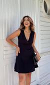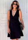 Kadın Kalın Askılı Kruvaze Yaka Eteği Volanlı Krep Elbise