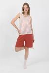 Kadın Kalın Askılı Pamuk Penye Şortlu Takım Turuncu, hem şık hem de rahat bir kombin oluşturmanızı sağlar.