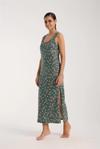 Çamaşır Kenti'nin şık tasarımlı Kadın Kalın Askılı Yırtmaçlı Uzun Yeşil Geceliği, konforu ve şıklığı bir arada sunuyor.