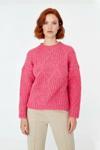 Ersefa Kadın Kalın Saç Örgülü Oversize Triko Kazak Soğuk Havalar İçin Şık Bisiklet Yaka Standart Kol