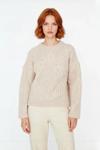Ürün Özellikleri: Oversize kalıp, akrilik polyester materyal, saç örgüsü desen, bisiklet yaka, standart kol, triko kumaş, gri renk, kemersiz tasarım.
