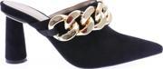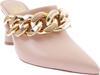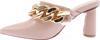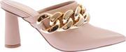 DGN Kadın Kalın Zincir Aksesuarlı Sivri Burun Topuklu Terlik Bej 2191592859