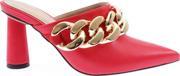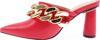 DGN Kadın Kalın Zincir Aksesuarlı Sivri Burun Topuklu Terlik Kırmızı 2191592859