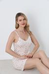 Yumuşak ve hafif kumaşı sayesinde gün boyu konfor sağlarken, ip askılı üst ve dantel detaylı kenarlar feminen bir dokunuş sunar.