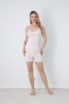 Romantik ve zarif tarzı bir araya getiren bu kadın kalp desenli şort takım, evde hem rahat hem de şık hissetmek isteyen kadınlar için tasarlandı.