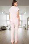 Sizi gün boyu rahat ettirecek bu şirin pembe pijama takımıyla tanışın! Kalpli desenleriyle büyüleyici bir görünüme sahip olan takım, yumuşak örme kumaşından üretilmiştir. Nefes alan yapısıyla sıcak yaz gecelerinde bile serin kalmanızı sağlar. Rahat kalıbı sayesinde gün boyu evinizde veya dinlenmek istediğiniz her yerde rahatlıkla kullanabilirsiniz. İnce askılı üst ve uzun paçalı şortuyla hem şık hem de pratik bir seçenek sunar. Günlük kullanım için ideal olan bu takım, 93% polyester ve 7% likradan oluşan dayanıklı ve kaliteli bir materyalden üretilmiştir. Makinede 60 derecede yıkanabilir özelliğiyle de pratikliği ön plana çıkarır. İşte size mükemmel uyumu ve şıklığı birleştiren bir pijama takımı!