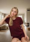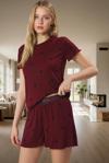 Boyraz Kadın Milan Bisiklet Yaka İnce Kısa Kol Pijama Takımı 11003 - 1 Adet Bordo-XL - Image 1