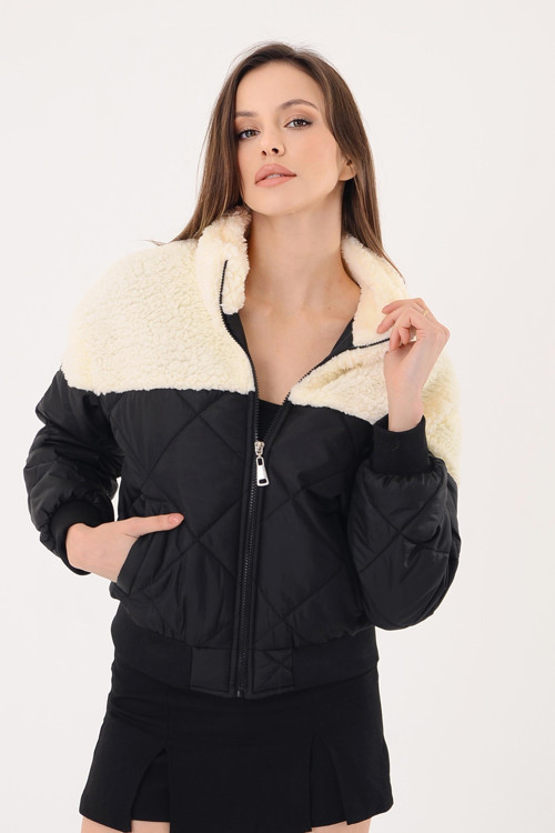 Kadın Kapitone Şişme Mont - Ekru