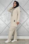 Ka Hijab Renk Bloklu Kapüşonlu İki İplik Takım - Bej