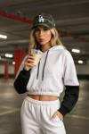 Spor ve şıklığı bir arada sunan kadın kapüşonlu cepli siyah-beyaz crop sweatshirt, modern tasarımıyla günlük kombinlerinize dinamik bir hava katar. Kontrast renk detayları, tarzınıza enerjik bir görünüm kazandırırken crop kesimi yüksek bel pantolon, tayt veya eteklerle mükemmel uyum sağlar. Yumuşak dokulu kumaşı sayesinde gün boyu rahat bir kullanım sunar. Ayarlanabilir kapüşon detayı serin havalarda koruma sağlarken ön cep tasarımı hem pratiklik hem de sportif bir görünüm ekler.Öne Çıkan Özellikler:Model: Kapüşonlu, cepli, crop kesimRenk: Siyah-beyaz kontrastKumaş: Yumuşak, nefes alabilen ve dayanıklı dokumaKullanım Alanı: Günlük, spor, sokak modasıMevsim: İlkbahar, sonbahar, serin yaz akşamları