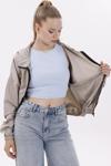 Kadın Dik Yaka Su ve Rüzgar Geçirmez Oversize Crop Mevsimlik Yağmurluk Rüzgarlık - Image 1