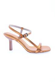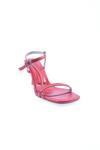 DGN Kadın Kare Burun Topuklu Sandalet Kırmızı Kırışık 8143275