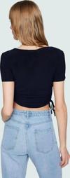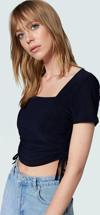 Şıklığı ve rahatlığı bir arada sunan bu lacivert bluz, günlük stilinizi tamamlamanız için ideal bir seçenek. Kare yakası ve modern tasarımıyla dikkat çeken bluz, ince ve esnek örme kumaştan üretilmiştir. Vücuda oturan kalıbı ile kusursuz bir görünüm sağlarken, büzgü detayı da şıklığınıza şıklık katıyor. Kısa boyu ile farklı kombinler yaratabilir, yüksek bel pantolonlar veya eteklerle kombinleyebilirsiniz. Günlük kullanım için son derece rahat olan bu bluz, polyester ve elastan karışımından üretildiği için kolayca yıkayabilir ve bakımını sağlayabilirsiniz. Nefes alabilen yapısıyla gün boyu konfor sunarken, her mevsimde rahatlıkla giyebilirsiniz.