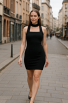 Kadın Kare Yaka Kolsuz Sandy Kumaş Fırsat Ürün Diz Üstü Elbise