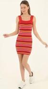 Kadın Kare Yaka Midi Boy Likralı Polelit Elbise - Kırmızı