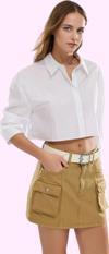 Haki rengi, kargo cepli ve mini boy denim eteğimiz, günlük yaşamınızda rahatlık ve şıklığı bir arada sunuyor. Yüksek bel tasarımı ve A-line kalıbıyla vücut hatlarınızı mükemmel bir şekilde tamamlarken, %100 pamuklu yapısı ile gün boyu konfor sağlar. Denim kumaşı nefes alabilir ve dayanıklıdır; rahatlığıyla dikkat çeker. Eteğin kargo cepleri hem şık bir detay hem de kullanışlı bir özelliktir. Ceplere telefonunuzu, anahtarlarınızı veya cüzdanınızı koyabilirsiniz. Bu etek, birçok farklı kombinasyon için idealdir. Bir tişört veya bluz ile günlük kullanım için mükemmel bir seçimdir. Ayrıca, şık bir üst ve topuklu ayakkabı ile daha resmi bir görünüm de yaratabilirsiniz. Kısa boyu ve A-line kalıbı, her vücut tipine uyum sağlar. Günlük yaşamınızda stil sahibi ve rahat hissetmek istiyorsanız, bu etek tam size göre. Eteğin bakımı da oldukça kolaydır; makinede yıkanabilir.