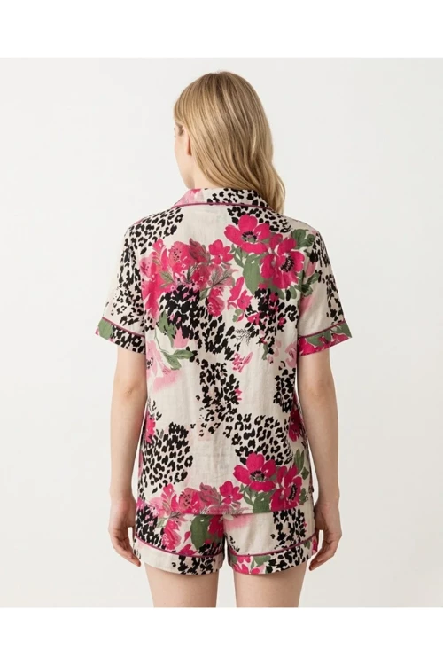 Kadın karışık desenli şortlu pijama takımı, yaz aylarında hem konfor hem de şıklık arayanlar için özel olarak tasarlanmıştır.
