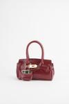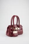 Kadın Kasa Bordo Charm Hediyeli Tasarım Çevirme Kilit Kapama El Kol Ve Omuz Çantası