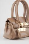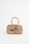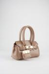 Kadın Kasa Koyu Vizon Charm Hediyeli Tasarım Çevirme Kilit Kapama El Kol Ve Omuz Çantası