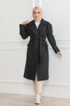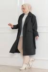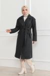 Mzp Kartan Kadın Kaşe Kaban – Uzun Boy 115 cm Kruvaze Yaka Kuşaklı Astarlı Kışlık Tesettür Kaban, Yünlü Dokuma