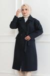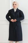 Mzp Kartan Kadın Kaşe Kaban – Uzun Boy Kruvaze Yaka Kuşaklı Tesettür Kaşe Kışlık Kaban, Astarlı Şık Yünlü Dokum