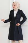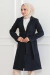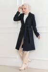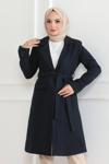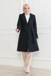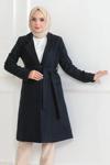 Mzp Kartan Kadın Kaşe Kaban – Uzun Boy Kruvaze Yaka, Kuşaklı Tesettür Kışlık Kaban, Astarlı Şık Yünlü Dokuma Ov