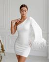 Kadın Kayık Yaka Kolu Salaş Püskül Detay Kalem Mini Elbise