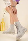 wilcoom Kadın Kaymaz Tabanlı Yandan Fermuarlı Gri Cilt Bot