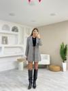 Kadın Kazayağı Desen Vatka Detay Kaban Ve Yüksek Bel Etek Ikili Takım
