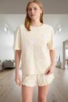 Bu pijama takımı %100 pamuktan üretilmiştir, nefes alabilir ve yumuşaktır. Fırfırlı şort detayı ile şıklığı yakalarken, regular kalıp rahatlığı sunar. Kedi ve kalp desenleri ile eğlenceli bir havaya sahiptir. Boru paça şortlar ve standart kısa kollar ile yaz aylarında serin kalmanıza yardımcı olur. Metraj baskı tekniği ile canlı renkler ve net desenler elde edilmiştir.