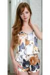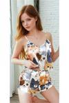 Kadın Kedi Desenli Çok Renkli Saten Askılı Kısa Şortlu Yazlık Pijama Takımı