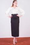 - Kesim: Uzun kalem etek (vücut hatlarını zarifçe sarar ve sofistike bir duruş kazandırır)