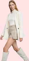 Zarif ve şık görünümüyle dikkat çeken bej yüksek bel şort etek, gardırobunuzun yeni gözdesi olacak! %100 pamuklu dokuma yapısıyla gün boyu konfor sunarken, tüvit dokusu ve ekose deseniyle de sofistike bir hava katıyor. Kemer detayı ile belinizi ince gösterirken, şort etek modeliyle de hem modern hem de zamansız bir tarz yakalamanızı sağlıyor. İpliği boyanmış özel kumaşı ile benzersiz bir görünüme sahip olan bu şort etek, kış aylarının vazgeçilmez parçalarından biri. Casual kombinlerinizin tamamlayıcısı olacak olan bu şort etek, topuklu ayakkabılar veya botlarla mükemmel bir uyum yakalar. Günlük hayatınızda, arkadaşlarınızla buluşmalarda veya özel davetlerde rahatlıkla kullanabilirsiniz.