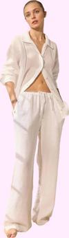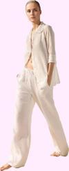 Günlük hayatın koşuşturmacasında rahatlığı ve şıklığı bir arada arayan kadınlar için mükemmel bir seçenek: %100 keten kumaştan üretilen, beyaz renkli, geniş paça pantolonumuz! Yüksek bel tasarımı ve uzun boyu ile kusursuz bir uyum yakalarken, nefes alan yapısı sayesinde gün boyu konforlu hissedeceksiniz. Denim kumaş tipi ve rigid dokuma sayesinde uzun ömürlü bir kullanım sunuyor. Yaz aylarının vazgeçilmez parçası olacak bu pantolon, hem günlük hem de özel günleriniz için ideal. Casual tarzınıza mükemmel bir şekilde uyum sağlayacak olan bu pantolon, çeşitli kombin seçenekleri sunuyor. Şık bir tişört ve spor ayakkabı ile günlük şıklığınıza, zarif bir bluz ve topuklu ayakkabı ile ise gece şıklığınıza uyum sağlayabilirsiniz. Makinede kolayca yıkanabilir olması da kullanım kolaylığı sağlıyor. Bu pantolon ile stilinizi özgürce ifade edebilir, rahatlığınızdan ödün vermeden şık görünümünüzü koruyabilirsiniz. Sıcak yaz günlerinde serin ve şık kalmanın sırrı bu pantolonun rahatlığında saklı! Size mükemmel bir uyum sağlayacak olan bu geniş paça pantolon ile stilinizin sınırlarını zorlayın!