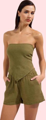 Yazın sıcak günlerinde hem rahat hem de şık görünmek mi istiyorsunuz? O zaman bu haki renkli %100 keten plaj şortu tam size göre! Doğal keten kumaşın yumuşak dokusu ve nefes alabilir yapısıyla gün boyu konfor hissedeceksiniz. Normal bel ve düz kesim tasarımıyla her vücut tipine uyum sağlayan şortumuz, boru paçası ile modern bir görünüm sunuyor. Kısa boyu sayesinde hareket özgürlüğünüzü kısıtlamadan plajda, havuzda veya şehrin sokaklarında rahatlıkla kullanabilirsiniz.