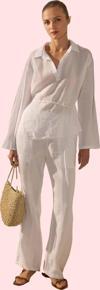 Ersefa Kadın Keten Uzun Kollu Gömlek Dik Yaka Regular Kalıp Günlük Hafta Sonu Yaz Aylarının Vazgeçilmezi