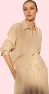 Rahatlığı ve şıklığı bir arada sunan, bej rengi, %100 keten uzun kollu gömleğimiz ile tanışın! Oversize kalıbı sayesinde gün boyu konfor sunan bu gömlek, yaz aylarının sıcak günlerinde bile serin kalmanızı sağlar. Nefes alan %100 keten dokusu ile benzersiz bir hissiyat sunarken, düz deseni ve gömlek yaka detayı ile her ortama uyum sağlar. Günlük kombinlerinizin tamamlayıcı parçası olacak bu gömlek, şıklığı ve rahatlığı bir arada arayanlar için mükemmel bir seçenektir.
