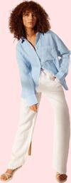 Kadın Bebe Mavisi 6s5-103 Organik Keten Kumaş Crop Fit Oversize Gömlek - Image 1