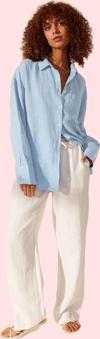 Its Basic Kadın Bebe Mavisi 6s5-103 Organik Keten Kumaş Crop Fit Oversize Gömlek