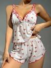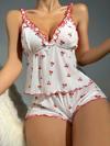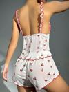 Kiraz desenli şortlu gecelik takımı, eğlenceli ve dikkat çekici bir tasarıma sahiptir. Hafif kumaşı ile rahat kullanım sunarken enerjik bir stil yaratır.