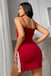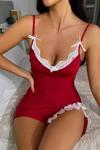 Beruflic Kadın Kırmızı Bacak Yırtmaçlı Beyaz Dantelli Ve Fiyonklu Şık Gecelik