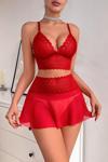 • Kırmızı Beli Dantelli Tül Etek ve Braletli Gecelik Takımı