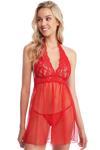 Kadın Kırmızı Dantelli Transparan Şık Gecelik Takım