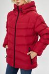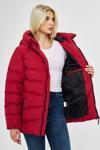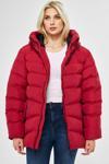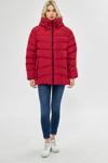 Kadın Kırmızı Kapüşonlu Su Ve Rüzgar Geçirmez Şişme Kışlık Mont.
